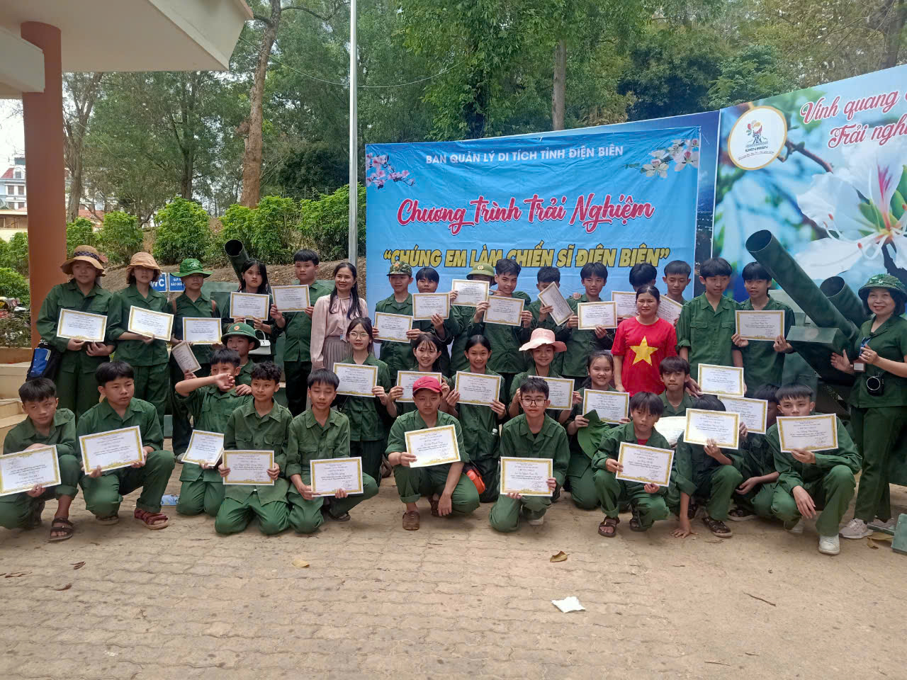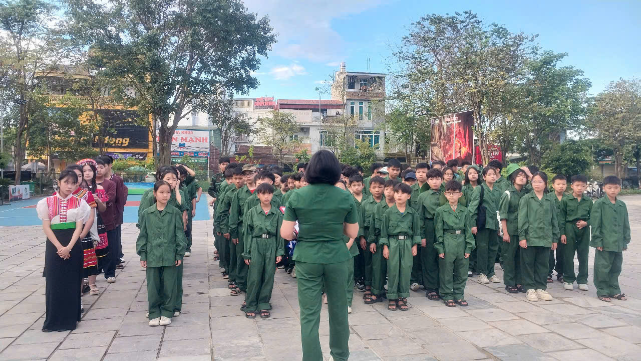 Một số hình ảnh HS khối 6,7,8 tham gia HĐTN" Chúng em làm chiến sĩ Điện Biên"